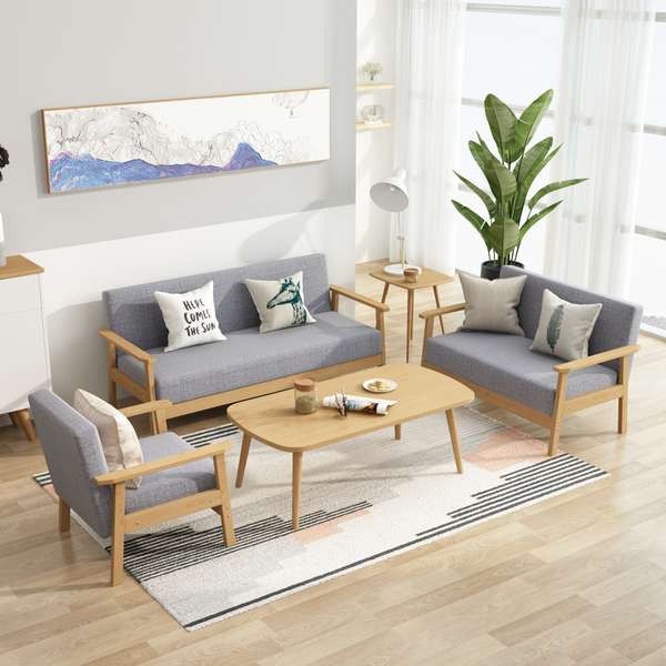 Gabungan Meja Kopi Sofa Kayu Pepejal Menetapkan Ruang Tamu Keluarga Kecil Moden Fabrik Minimalis Kerusi Pejabat Tiga Ora Shopee Malaysia